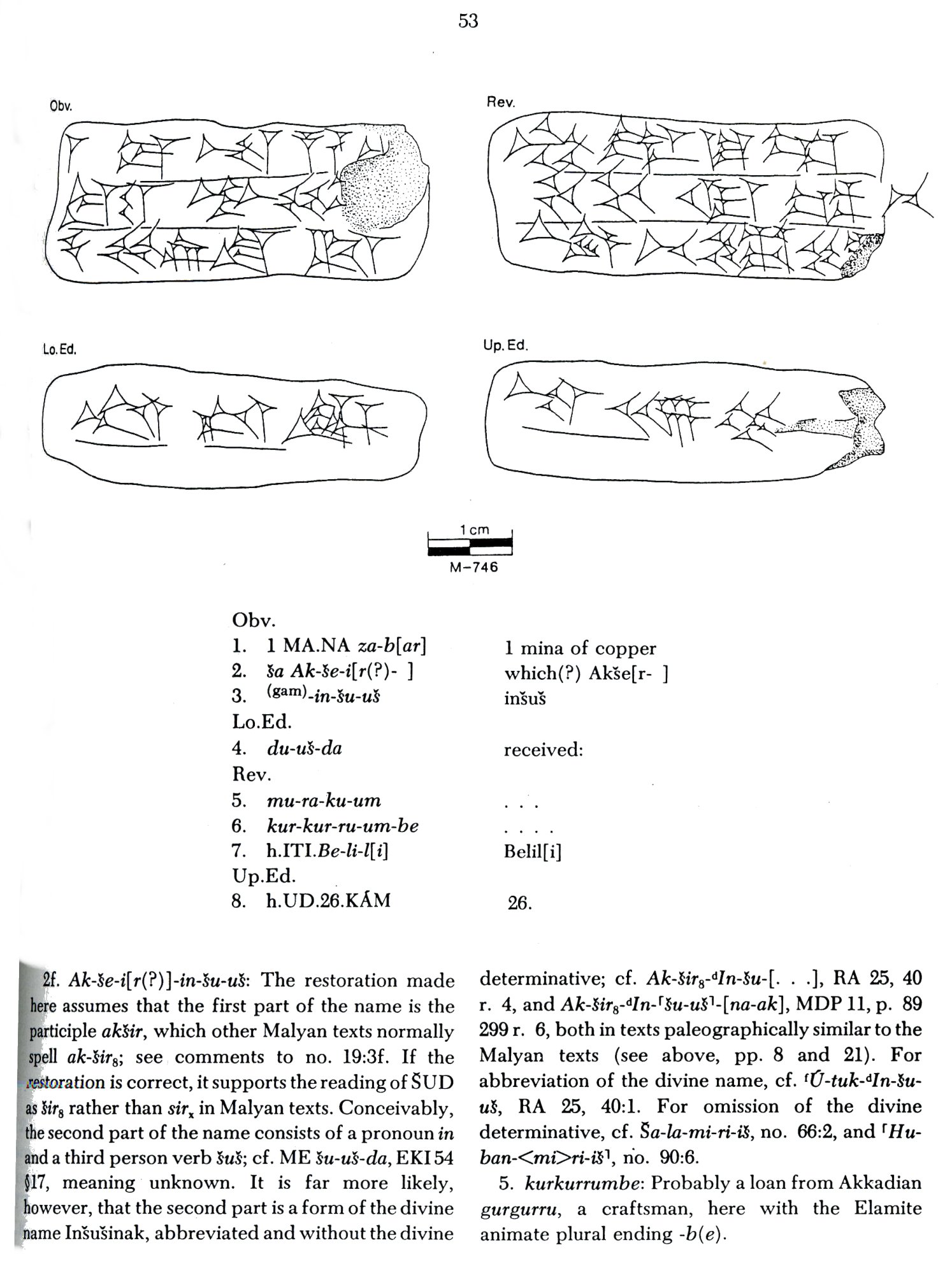 * Si tratta dell’iscrizione erroneamente attribuita a Šilhak-Inšušinak II in Hinz 1973: 23. Tale svista riproduce quella della lista di segni in König 1965, tavola 44, ‘Determinative’, segno GAM, dove si deve intendere ‘Nr. 77, Z. 1’.